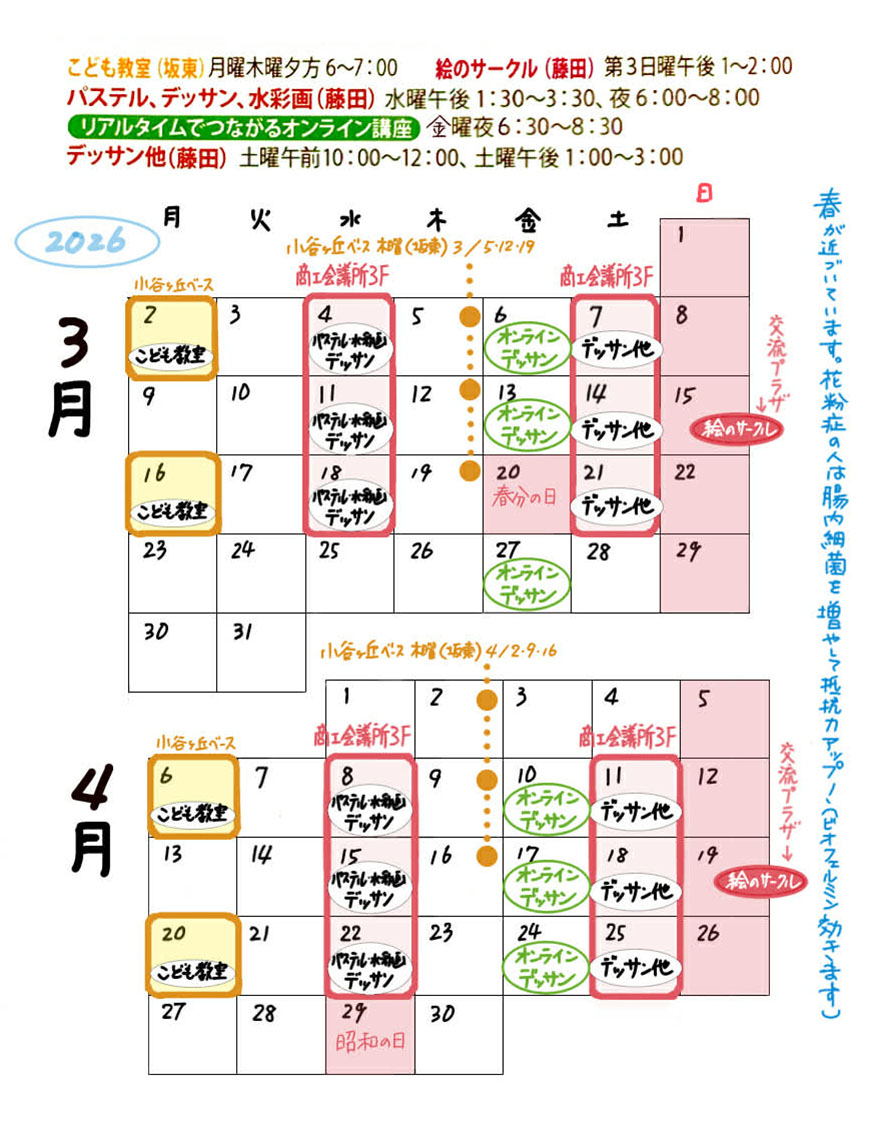 | デッサン他 | 10:00~12:00 商工会議所307 |